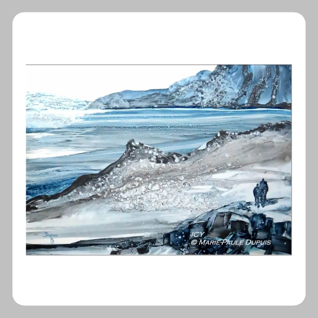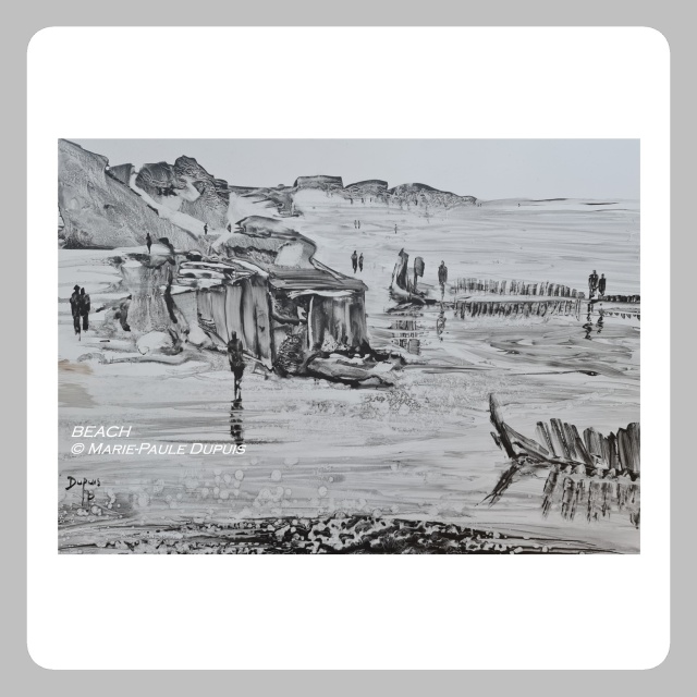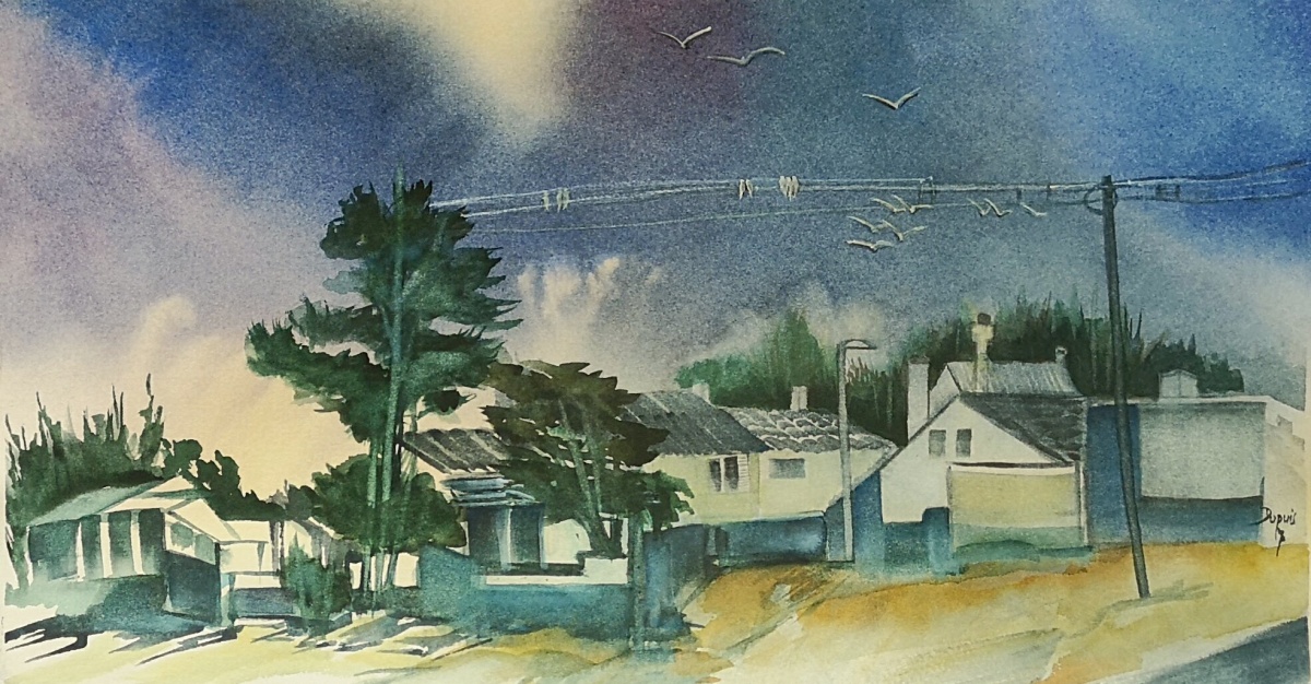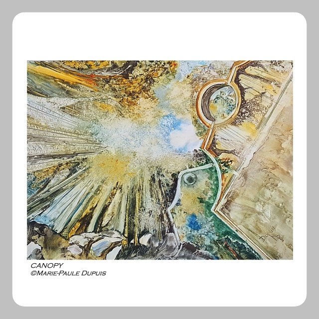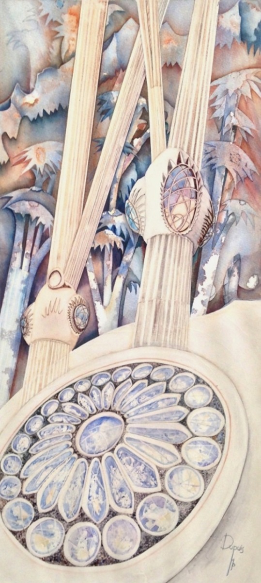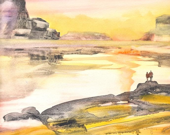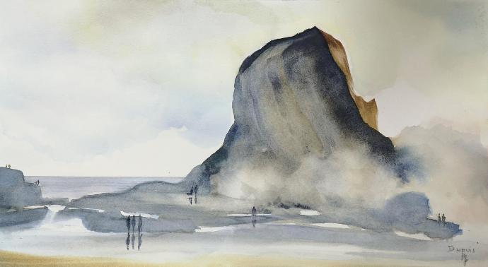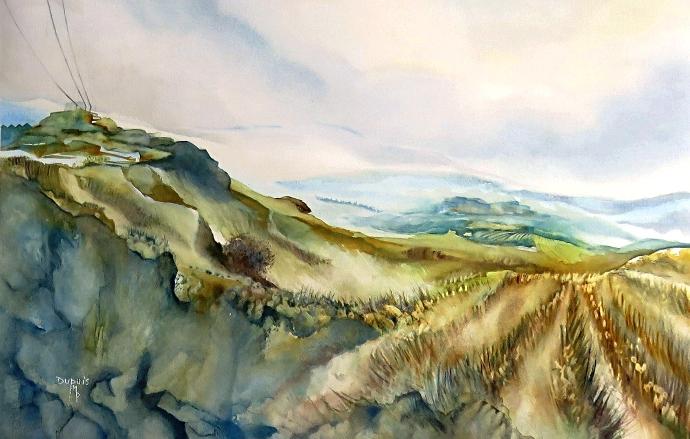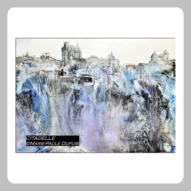 De temps en , je recouvre une partie de ma feuille aquarelle d'une couche de GESSO, assez fine pour qu'on distingue toujours le grain du papier.