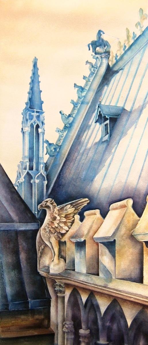 Depuis 2008, je travaille directement sur la feuille blanche, en superposant de fins lavis dans une palette de gris colorés. Patiemment, je peaufine les formes faisant petit à petit ressortir mon sujet et le travaillant jusqu'à cet infime moment où j'en ressens l'achèvement